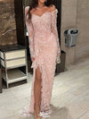 Sexy Pink Long Sleeve Lace Mermaid Long Prom Dress Ideas, Evening Party Dresses,WGP1785