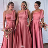 Elegant Pink One-Shoulder Sleeveless Mermaid Long Bridesmaid Dresses Online, WGM433