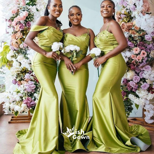One Shoulder Sweetheart Pleats Beaded Mermaid Wedding Guest Bridesmaid Dresses, WGM082