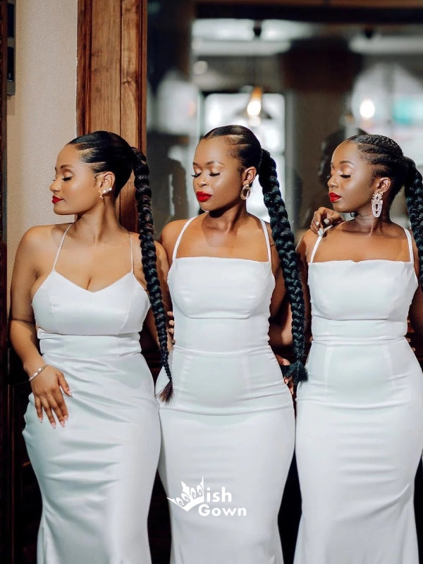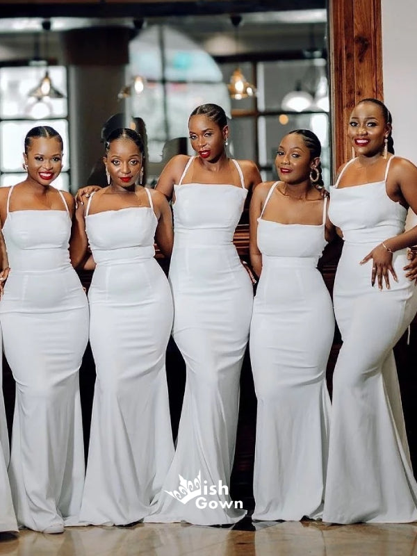Simple Chic White Spaghetti Straps Sexy Mermaid Long Bridesmaid Dresses, WGM081