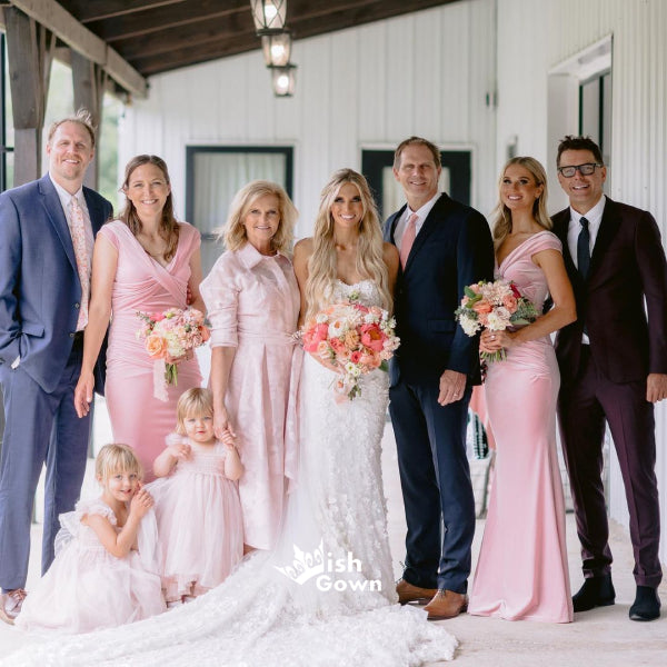 Stand up straight with shoes on and measure from the the center of the collarbone,down to where the hem of the dress shouldhit(excluding anytrain).