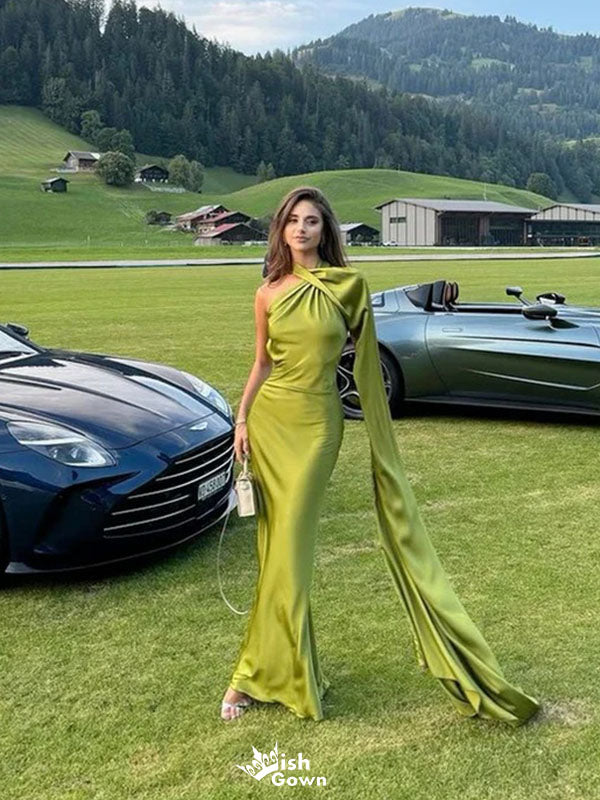 Elegant Green One-Shoulder Mermaid Long Prom Dress Ideas, Evening Party Dresses,WGP1613
