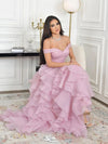 Elegant Pink Off-Shoulder Sleeveless A-Line Long Prom Dress Ideas, Evening Party Dresses , WGP1885