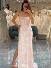 Elegant Pink Spaghetti Strap Sleeveless Mermaid Long Prom Dress Ideas,