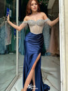 Sexy Off-Shoulder Mermaid Side Slit Long Prom Dress Ideas, Evening Party Dresses,WGP1618