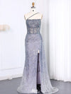 Shiny Blue One-Shoulder Mermaid Side Slit Long Prom Dress Ideas, Eveni