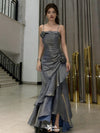 Unique Slate Blue Ruched Mermaid Prom Dress Spaghetti Strap Ruffle Tiered Gown,WGP2203