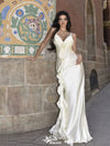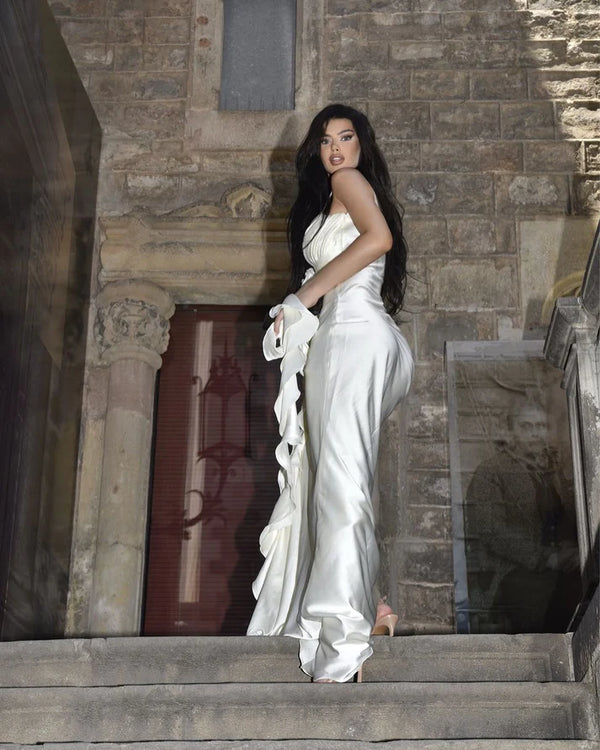 Elegant White Spaghetti Strap Mermaid Floral Long Prom Dress Ideas, Evening Party Dresses,WGP1701